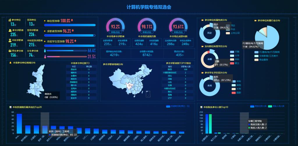 本次网络视频双选会,学院择优筛选参会单位13家, 提供就业岗位4000余个,毕业生累计投出简历400份次,视频面试400人次。