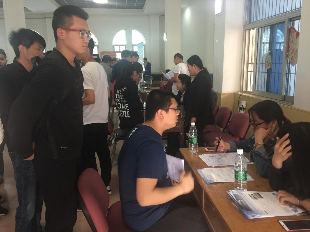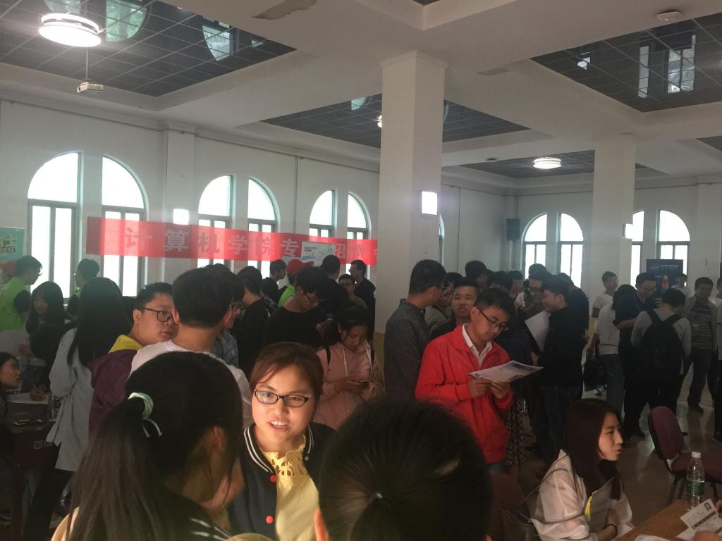 4月10日下午,龙八头号玩家官网在职工活动中心举办专场招聘会。来自陕西比扬通信科技有限公司、北京双星普天科技有限公司、深圳市德卡科技股份有限公司、北京四维图新科技股份有限公司、博彦科技股份有限公司等13家用人单位参加了现场招聘,共为毕业生提供了80余个岗位。