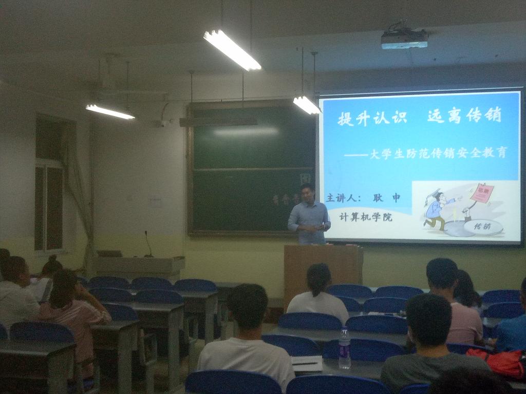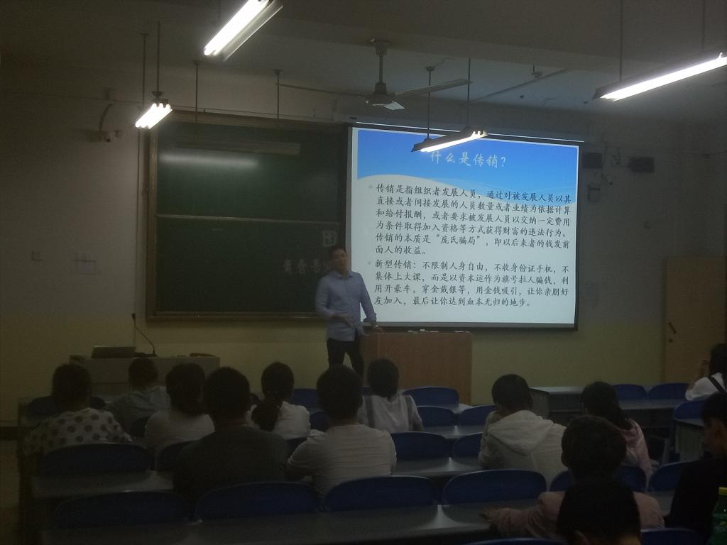 9月20日晚,龙八头号玩家官网开展防范传销主题宣讲活动,旨在提高学生自我防范意识,甄别传销、远离传销。宣讲由辅导员耿申主持。