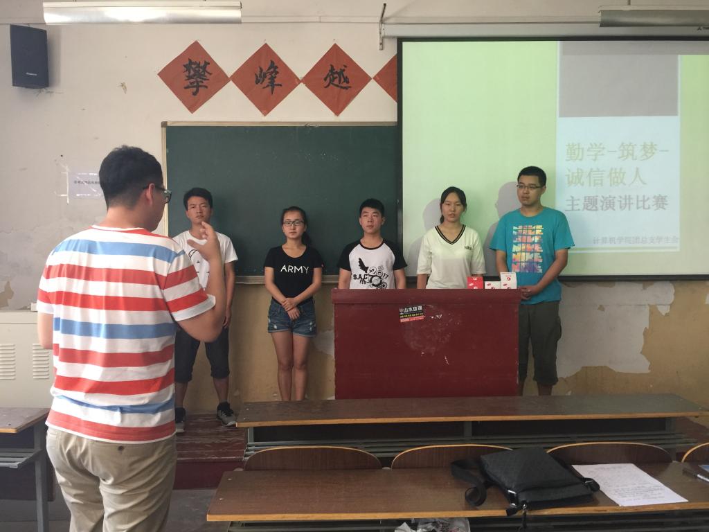 为了培养学生诚信意识,营造健康向上的校园氛围,龙八头号玩家官网于6月23日中午在0321教室举办“与诚信同行,共筑中国梦”主题演讲比赛,评委由团总支书记米嘉琪担任。