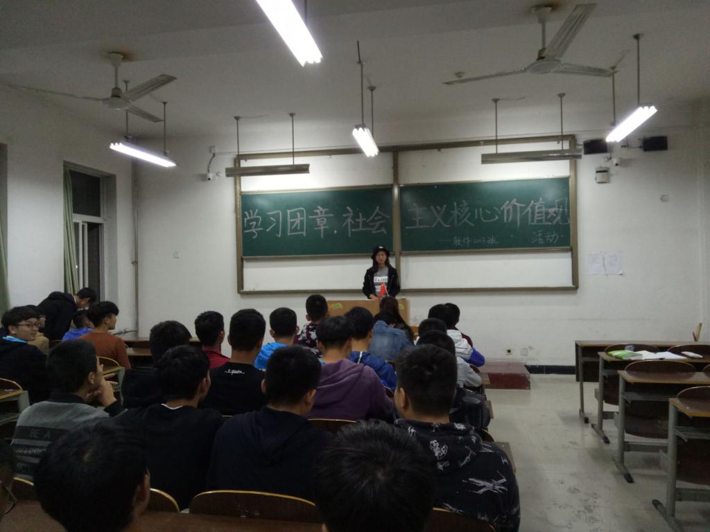 10月24日晚,龙八头号玩家官网团总支组织大一新生开展学团章和社会主义核心价值观主题团会,旨在通过游戏的方式加强同学们对团章和社会主义核心价值观的认识。