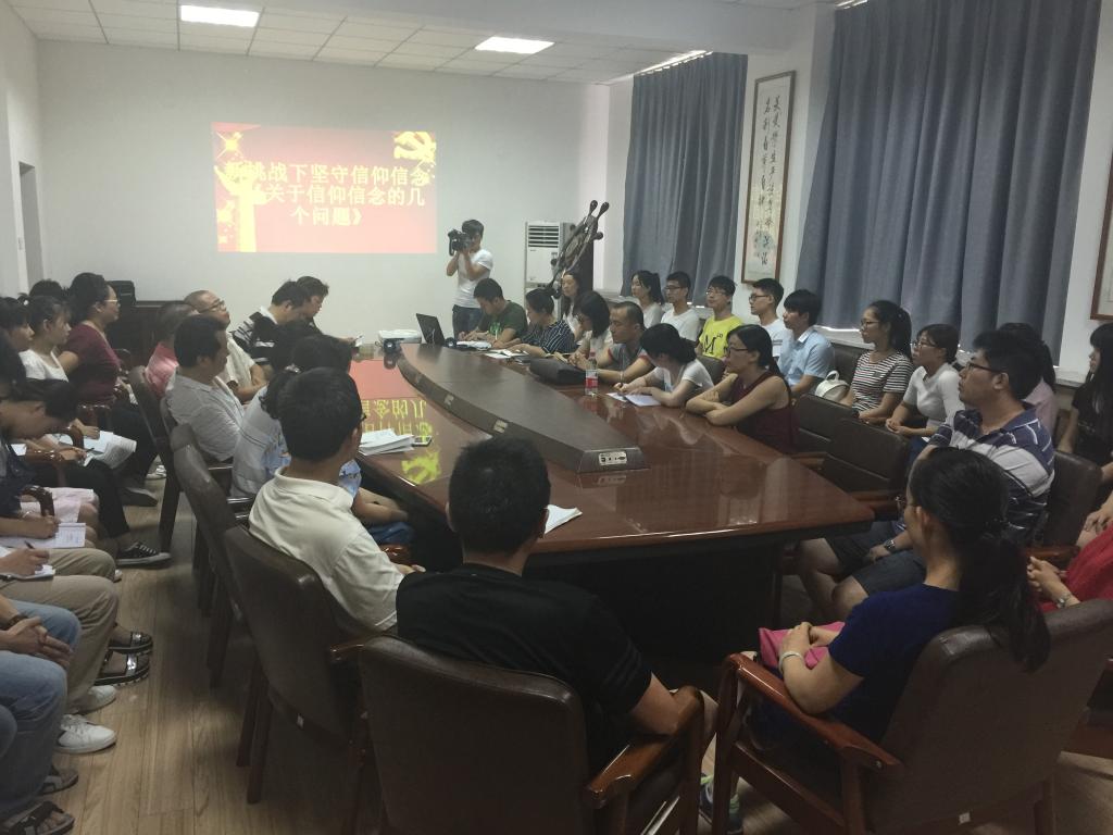 全体党员围绕建党95周年和信仰信念问题进行了座谈和讨论,新党员代表曹永乐、王旭、董静静作了发言,他们表示,作为学生党员应树立远大理想,勇于追求真理,为同学们树立榜样;教工代表米嘉琪、任静、杨俊清谈了自己的认识和体会,他们表示,党员要坚守信仰,加强理论知识学习,将理论应用到学习、生活、工作中,对党忠诚,传道、授业、解惑,发挥党员的先进性。共产党员应牢记誓词,将誓词深入内心,将共产主义作为信仰。