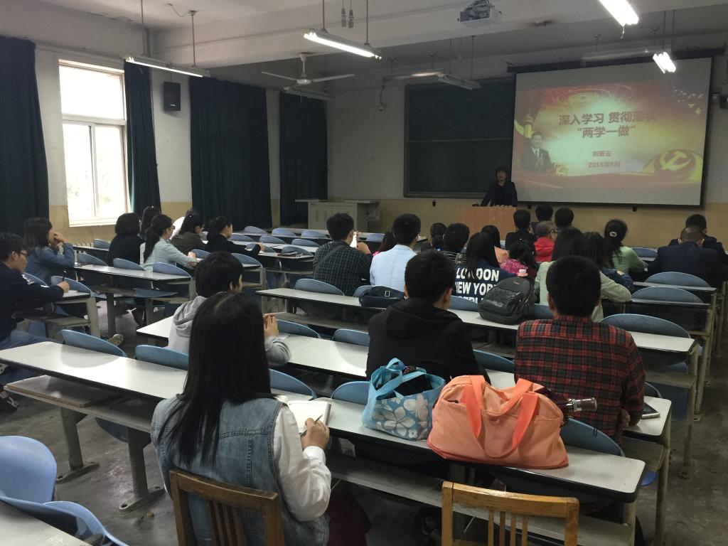 龙八头号玩家官网党总支于5月27日下午在教学主楼0214教室进行“两学一做”党课学习,由学院党总支书记刘晋云给大家上党课,21名教工党员和34名学生党员参加了学习。