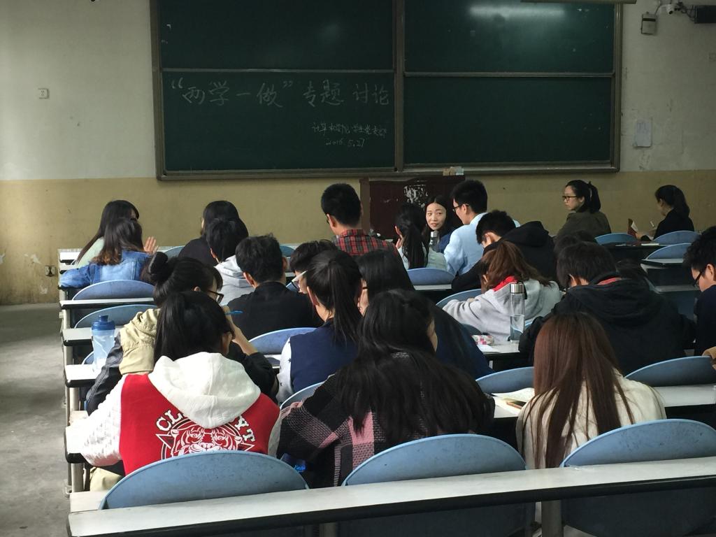 刘晋云书记首先带领大家学习近期《中国青年报》上的一篇文章——《入党就是追求心里最纯真的信仰》,希望全体党员同志能够追随共产主义信仰,全心全意为人民服务,为实现共产主义奋斗终身。接着,刘书记结合学院工作实际,从四个方面进行了讲述:一是把握“两学一做”的总体要求,按照“基础在学、关键在做”,“带着问题学、针对问题改”,“抓在日常、严在经常”等要求进行学习;二是了解“两学一做”的具体学习内容和标准,做到“四讲四有”,做到“五个方面”的要求;三是主要学习措施,分别从专题学习讨论、创新方式讲党课、立足岗位做贡献等五个方面进行阐述;四是新时期的教师和学生党员该如何落实“两学一做”。最后,按照党总支的部署,就“新常态下增强学习教育自觉性”这一主题,教工党支部和学生党支部分别进行了讨论。