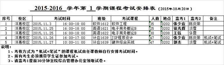 龙八头号玩家官网2015-2016-1学期考试安排(一)