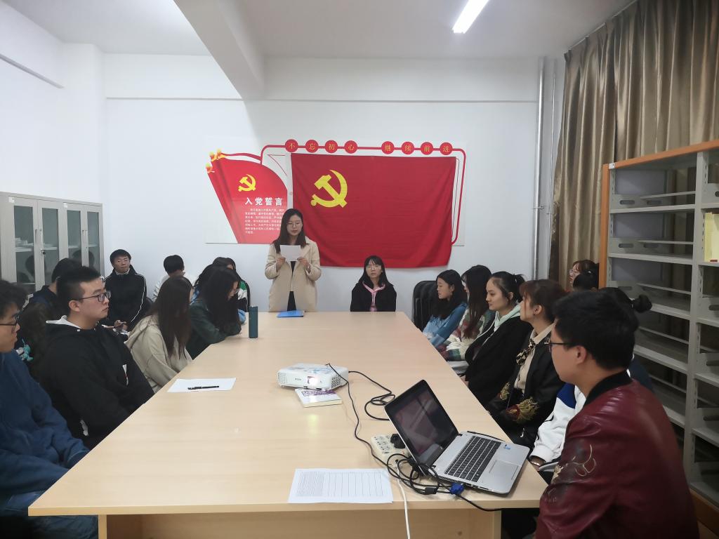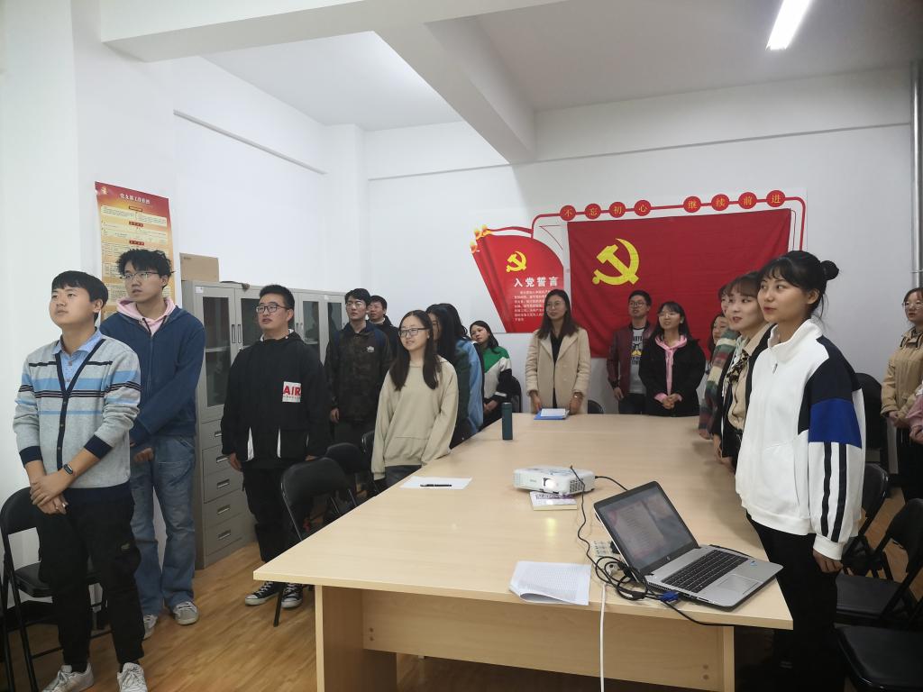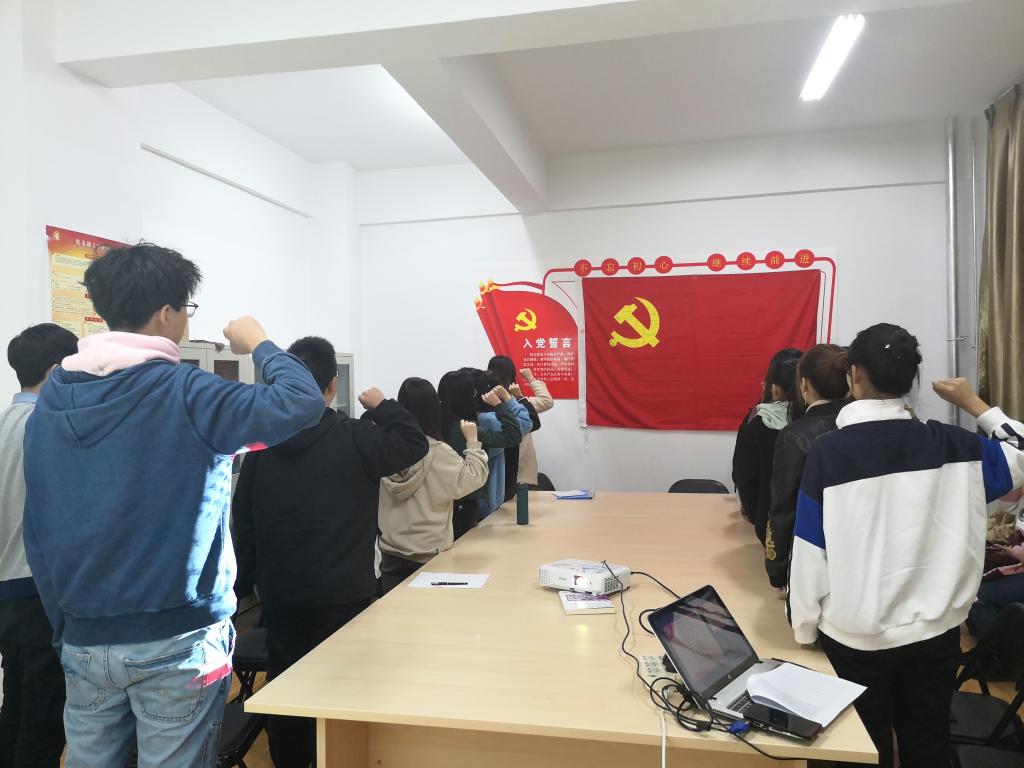 10月31日,龙八头号玩家官网学生党支部于三号公寓一楼党团活动室举行了预备党员入党宣誓仪式。十三名预备党员、学生正式党员代表和积极分子代表参加了此次活动,仪式由学生党员贾帅主持。