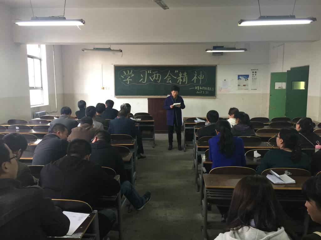 为认真贯彻两会精神,提高我院教职工的政治素养,龙八头号玩家官网党总支于3月31日下午在北233教室组织全体教职工学习“两会”精神。会议由党总支书记刘晋云主持。
