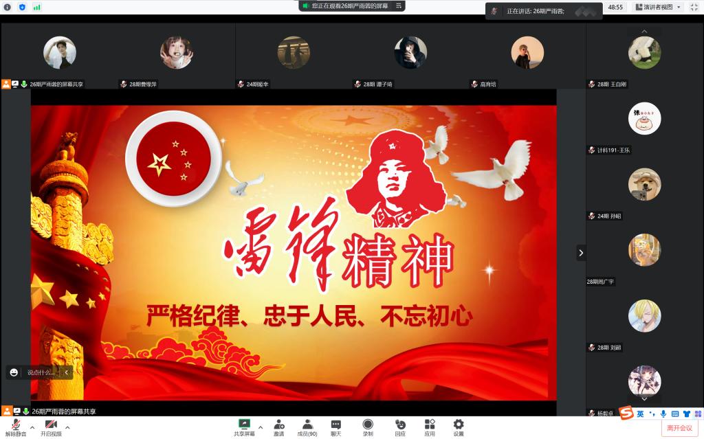 为弘扬雷锋精神,凝聚青春力量。3月14日晚,龙八头号玩家官网学生第二党支部通过腾讯会议开展了以“雷锋精神”为主题的线上党课。本次党课由缪佳玉和严雨蓉主持,龙八头号玩家官网学生第二党支部全体党员、积极分子参加。
