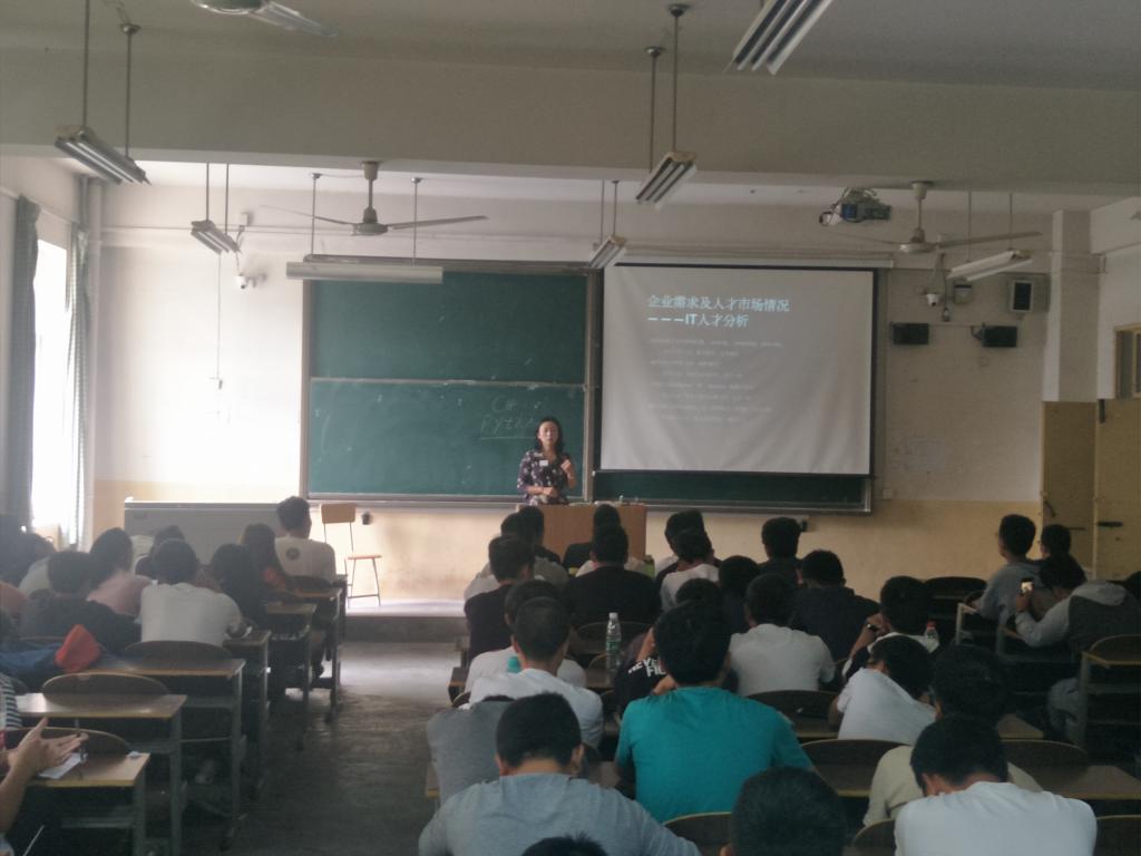 这次入学教育向新生介绍了龙八头号玩家官网的师资力量以及近几年我院在教学、科研、学科学位建设等方面取得的成绩和成果,同时讲述了大一老师的配备和教学课程的安排情况,还有学生比较关心的学籍、管理、升学、就业等方面的内容。讲课的过程中,老师们希望大家能积极地转变角色,尽快地找到适合自己的学习方法,更快地适应大学的学习和生活,积极融入班集体。为了让学生了解专业在实际中的运用和行业状况,我院还邀请了丝路软件等3个企业为不同专业方向的新生进行宣讲。