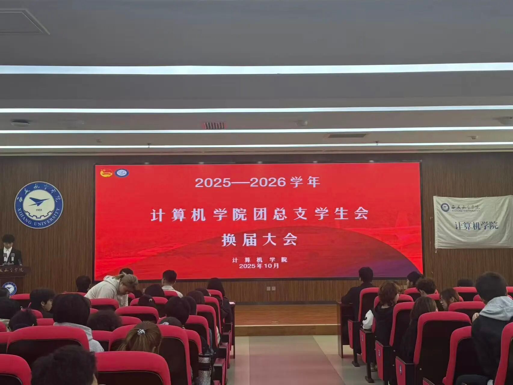 为夯实学院团总支学生会组织根基,完善团总支学生会架构,凝聚青年服务力量,10 月 16 日,龙八头号玩家官网2025年度团总支学生会换届大会在莲湖校区图书馆5楼报告厅顺利召开。龙八头号玩家官网党总支副书记汪芳、学工办副主任侯勇、团总支书记张家玮、辅导员李晨阳以及全体学生干部参加了本次换届大会。大会由新一届主席团成员李楠同学主持。