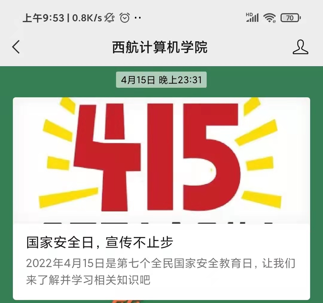 此前,龙八头号玩家官网党总支已通过微信公众号等推送了多期国家安全法律法规基本知识和新时代国家安全取得的成就等内容,有针对性地做好国家安全宣传工作。接下来,还将组织师生积极参与“全民国家安全教育日专项答题”等线上宣传教育活动,有效引导师生爱国、励志、求真、力行,切实筑牢总体国家安全观。